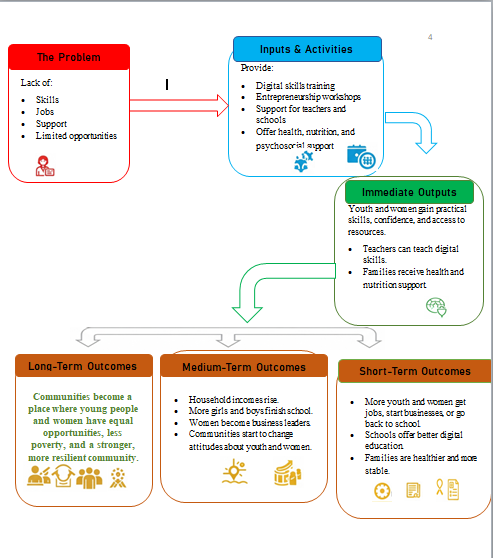 Most of the young people and women in Low Income Nations encounter a number of challenges, including unemployment, poverty, and limited opportunities. Tackling these issues require the efforts of different stakeholders, with the main interventions being providing comprehensive skills training in digital literacy, entrepreneurship, and life skills. Implementing these project will ensure that we bring a positive change to the community where young people and women are empowered to shape their own futures and contribute to the development of their communities.